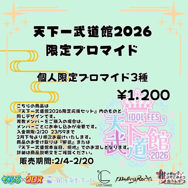 【ラストチャンス】天下一武道館2026 限定ブロマイド3種セット(~2/20 23:59まで受付)