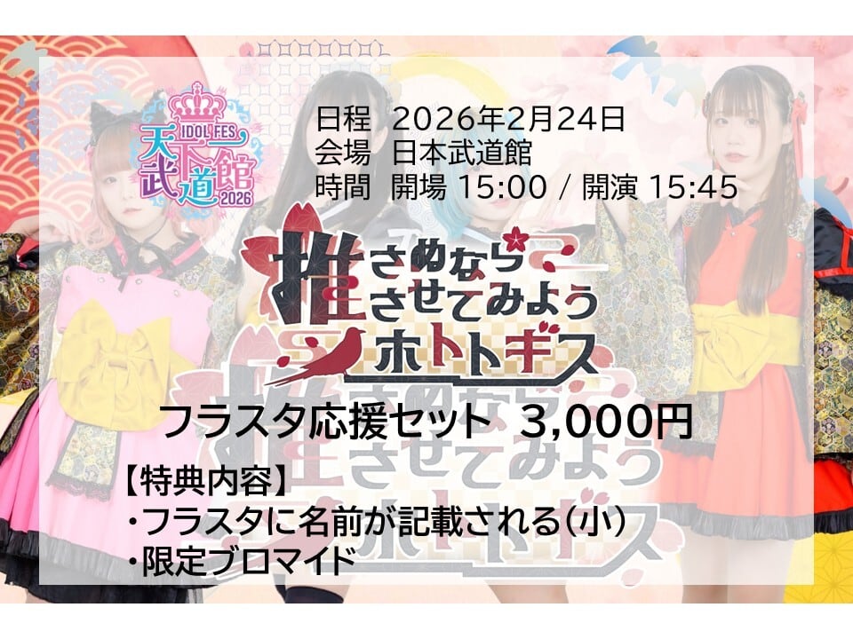 こちらの商品は、『推さぬなら推させてみようホトトギス 天下一武道館』に向けての応援セットとなっております。