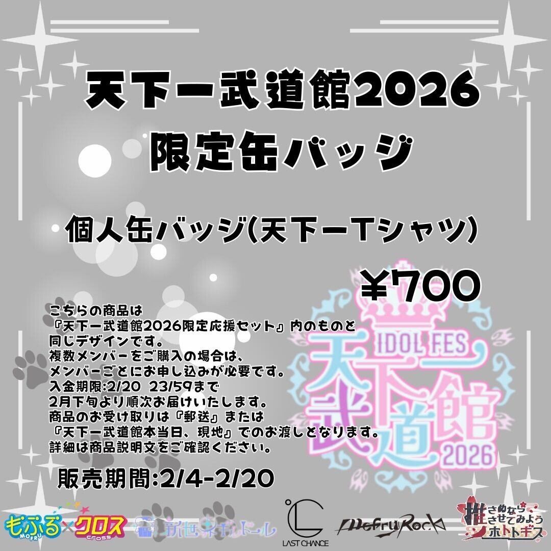【MofruRock】天下一武道館2026 限定缶バッジ(~2/20 23:59まで受付)