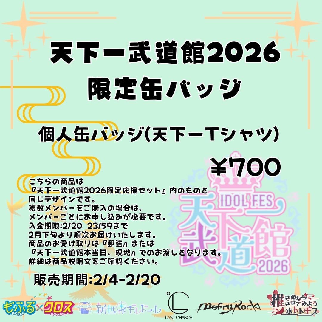 【推さぬなら推させてみようホトトギス】天下一武道館2026 限定缶バッジ(~2/20 23:59まで受付)